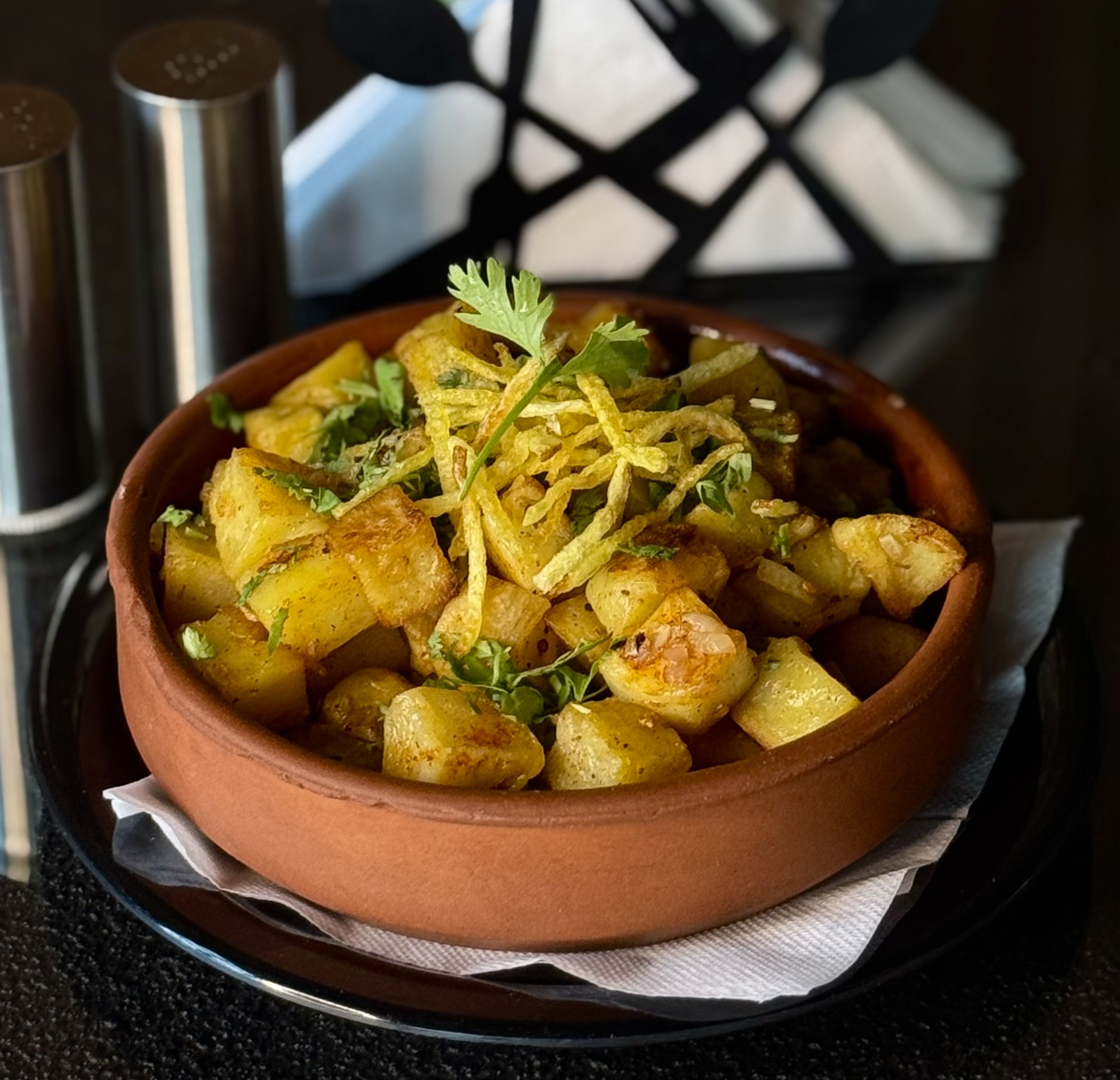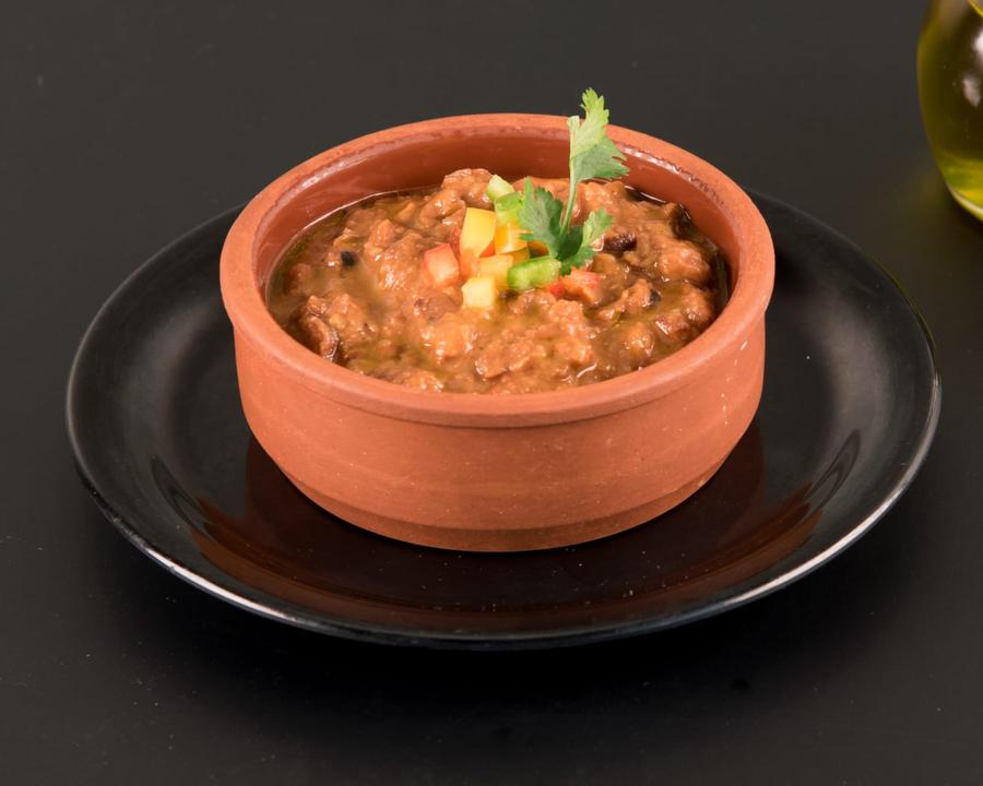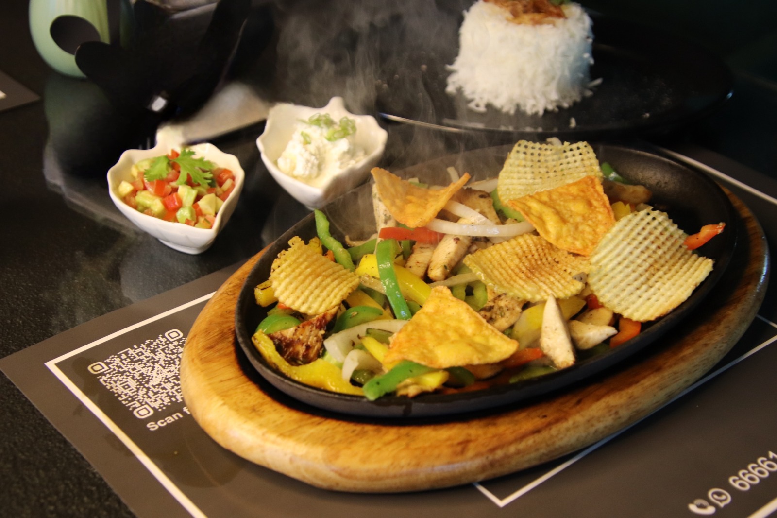 لحم بقري متبل ومقطع ومقلي في مقلاة مع البصل الأبيض والفلفل الحلو المختلط ويقدم في مقلاة ساخنة مع الأرز الأبيض أو البطاطس المقلية والكريمة الحامضة وصلصة الأفوكادو.