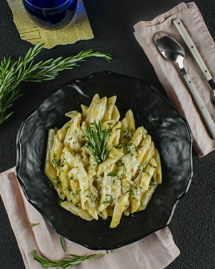 معكرونة بصوص ألفريدو يقدم مع زيت الريحان وجبنة البارميزان والأوريجانو (أضف الدجاج -1000 أو أضف الجمبري 1.500)