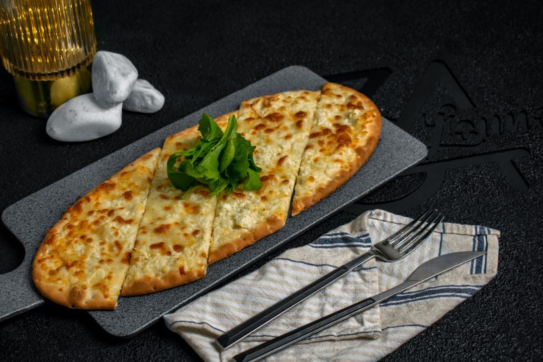 حمص، لبنة، فول، فلافل، جبنة فيتا بيضاء، سلطة خضراء، زيتون، مخلل وشاي يقدم مع الخبز اللبناني