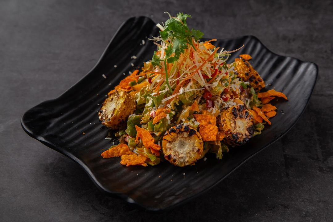 ملفوف أحمر ، ملفوف أبيض ، خليط أخضر ، جزر ، خيار ، محروق في 34 صالة خاصة تقدم مع خبز التورتيلا وجبنة البارميزان والكزبرة