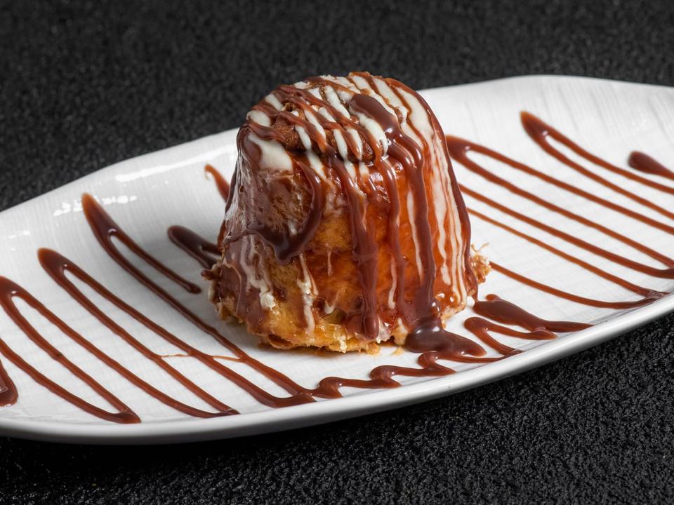Our special homemade Brownie with kinder chocolate sauce topped served with ice cream topped with chocolate sauce.