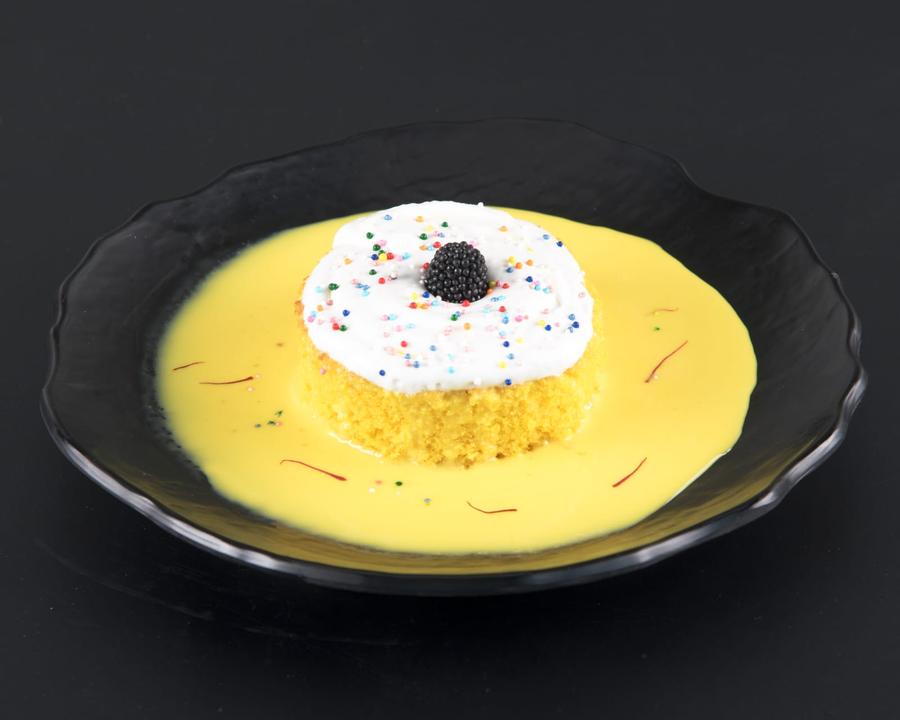 Delicious dessert with heady aroma and flavour of Safron served with safron sauce topped with whiping cream.