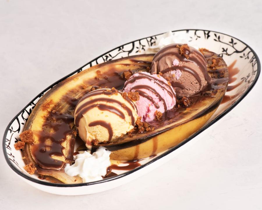Caramelized Banana topped with honey, nuts and assorted choice of ice creams.