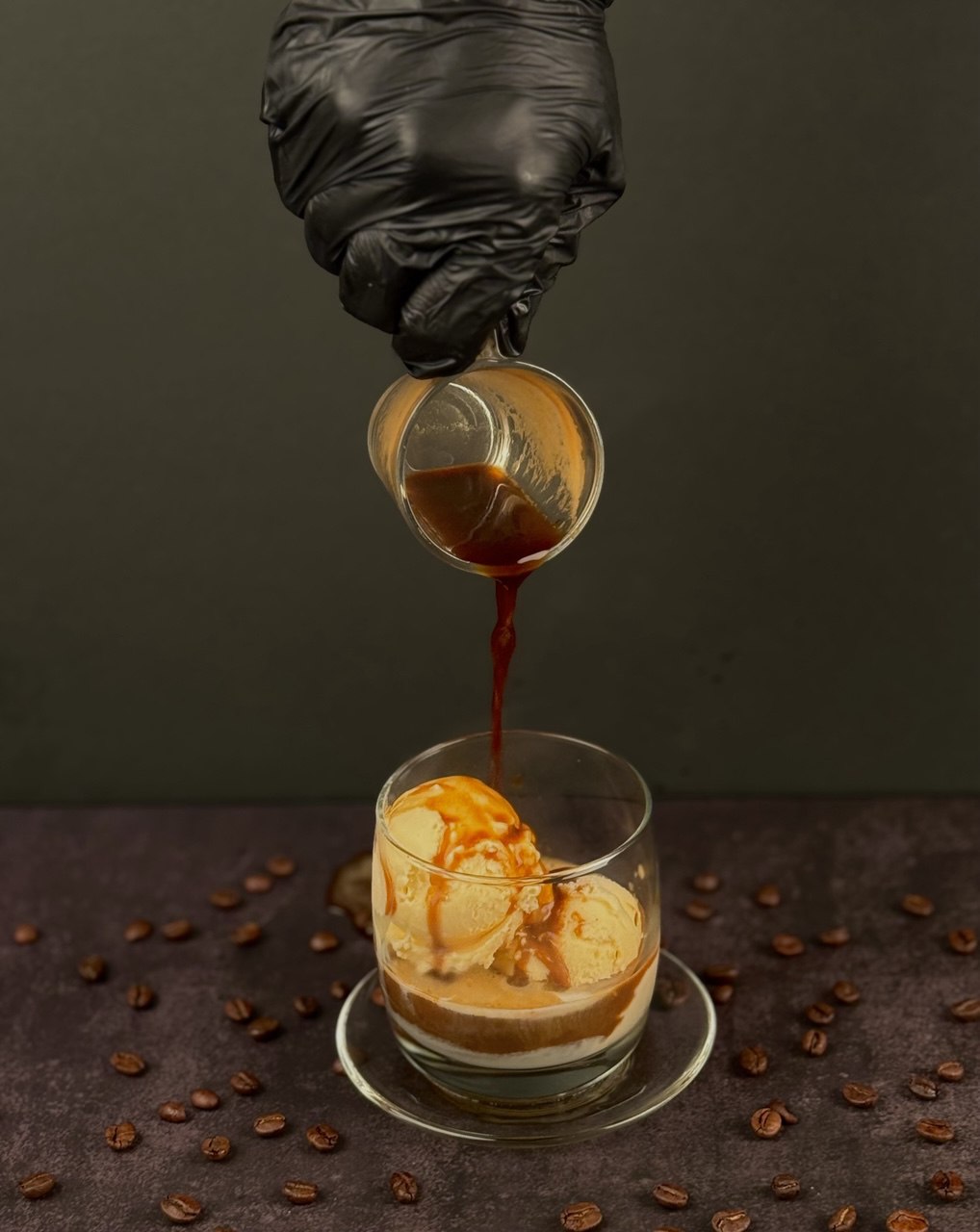 2 scoops of vanilla ice cream drowned in a shot of hot espresso.