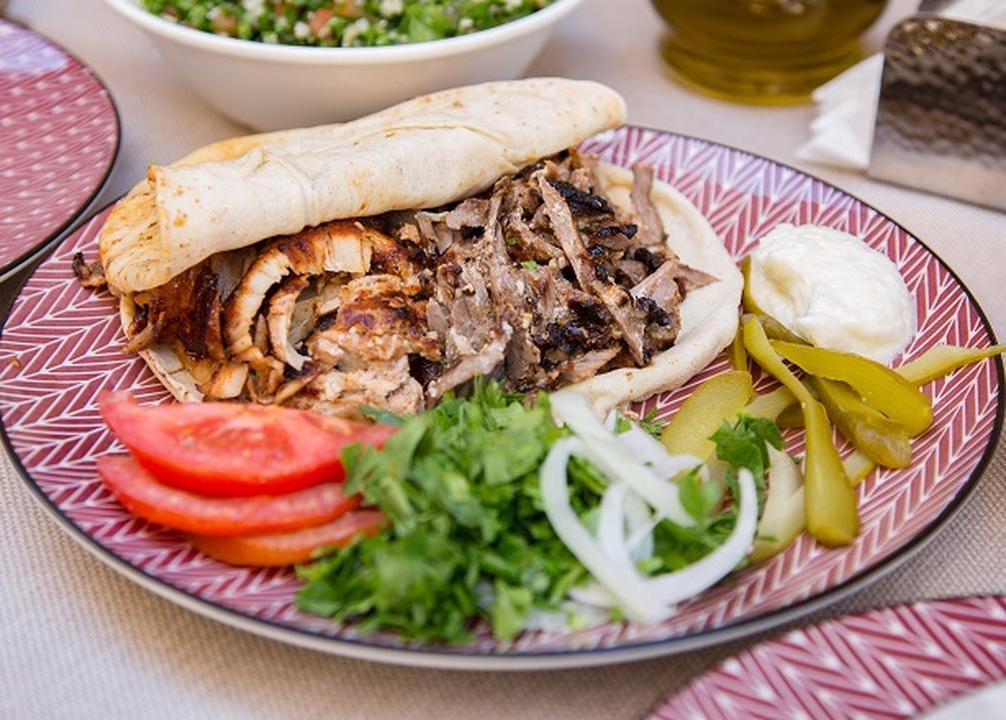 شاورما لحم ,طحينة ,مخلل,طماطم,بقدونس,بصل