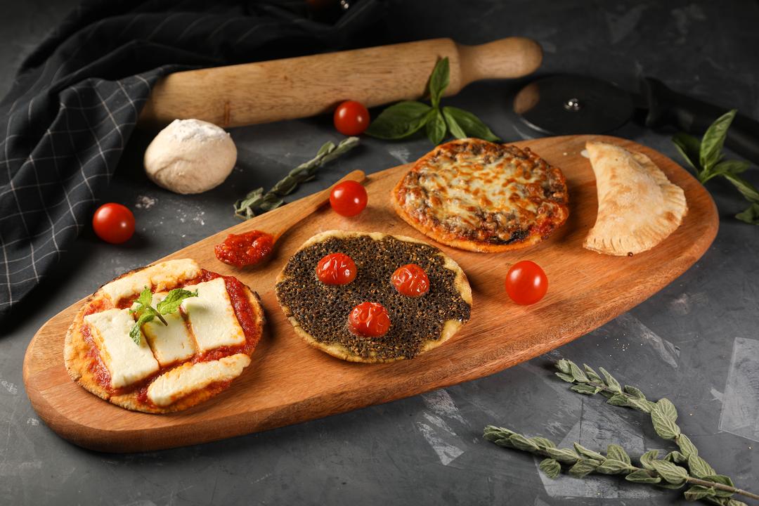 مكس 4 انواع جبنة مع صلصة بيستو الريحان و صدر الدجاج المشوي, بومودورو مع الزيتون الأسود