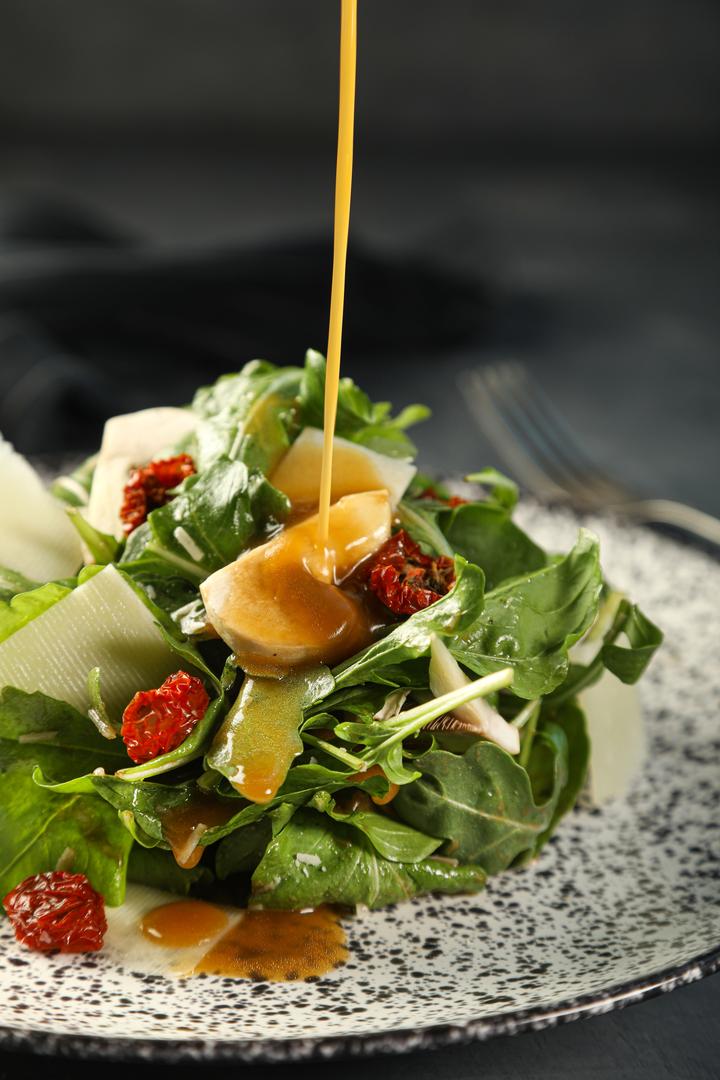 اوراق الجرجير والفطر الطازج مع جبنة البرميزان و الطماطم المجففة