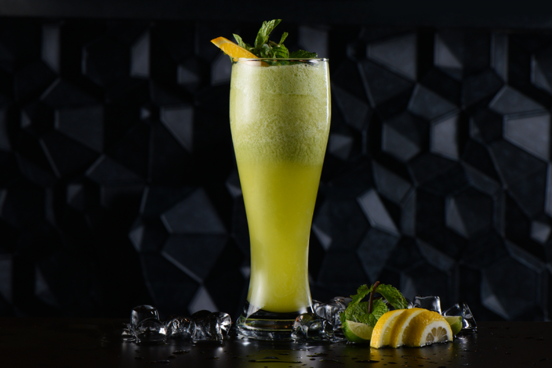 حمسة الحلوم الذهبية مع الفلفل الحلو و الخضار الطازجة (بصل,طماطم) و أوراق النعنع الطازجة