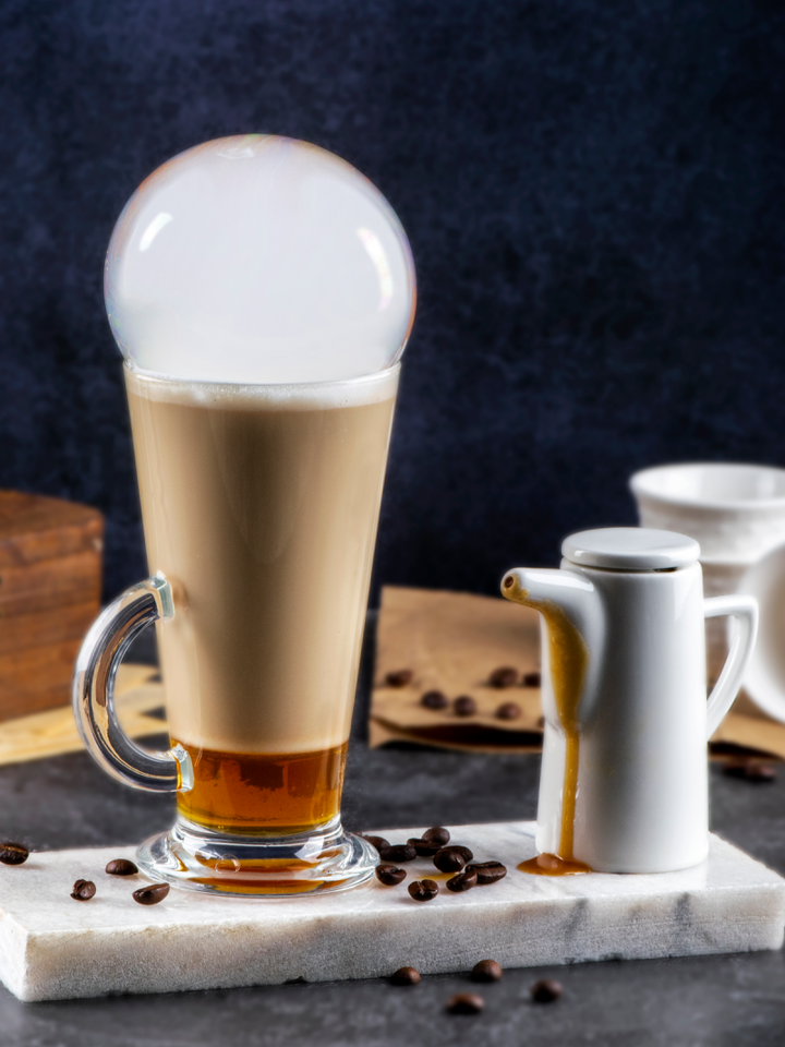 TOAST BREAD, CHOCOLATE HAZELNUT, CARAMELIZED BANANA, SALTED CARAMEL SAUCE, COTTON CANDY SERVED WITH VANILLA ICE CREAM.