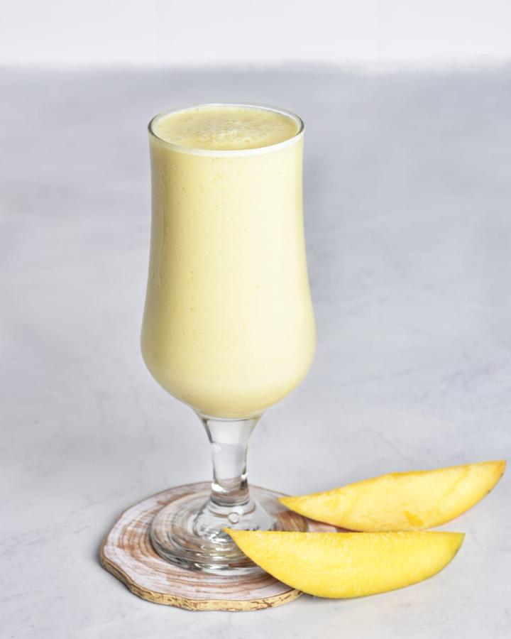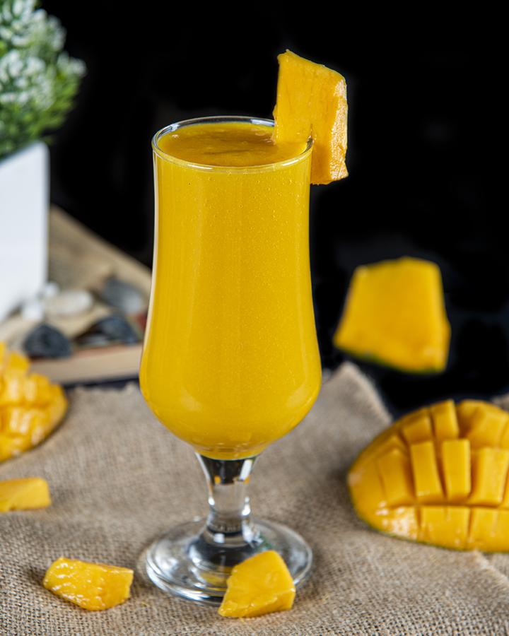 Layers of vanilla cake with natural mango filling, fresh mango pieces and berries.