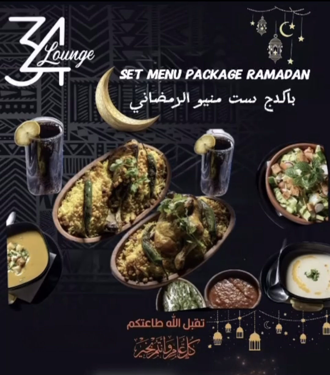 ٢ شوربة عدس أو شوربة قرع، ١ سلطة فتوش، واختيار طبقين رئيسيين - مجبوس دجاج أو لحم، برياني دجاج أو روبيان، صلصة دكوس مع لبان أو فيمتو، ومشروبين غازيي