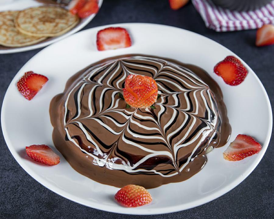 Our special homemade Brownie with kinder chocolate sauce topped served with ice cream topped with chocolate sauce.