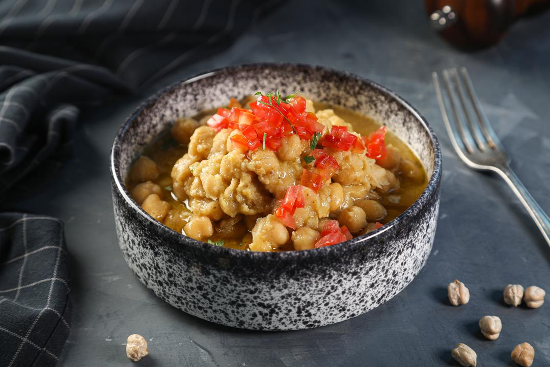 HOMEMADE CHICKPEAS WITH FRESH VEGETABLES SERVED WITH FRESHLY BAKED BREAD