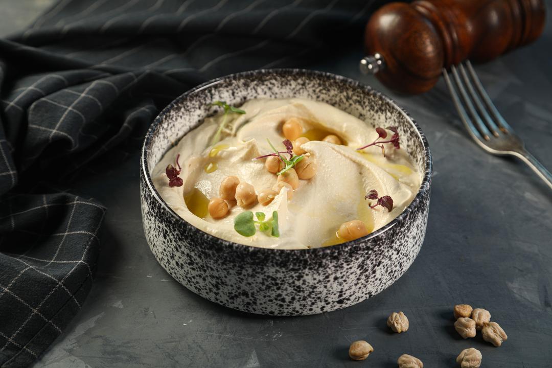 حمص ناعم ويقدم مع الخبز الطازج