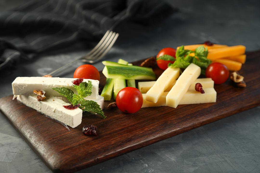 مختارات من الجبن الطازج تقدم مع الخبز الطازج