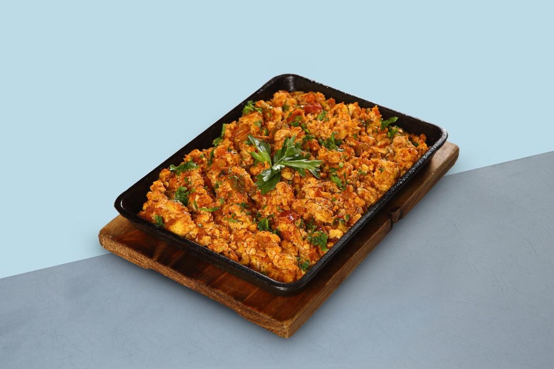 SUNNY SIDE EGGS SERVED CRISPY LAMB AND MIXED WITH AUTHENTIC SPICES