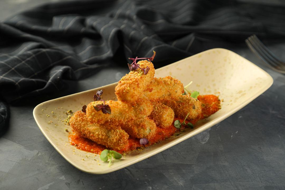 اصابع الموزريلا المقلية مع صوص الفليفلة و الفستق