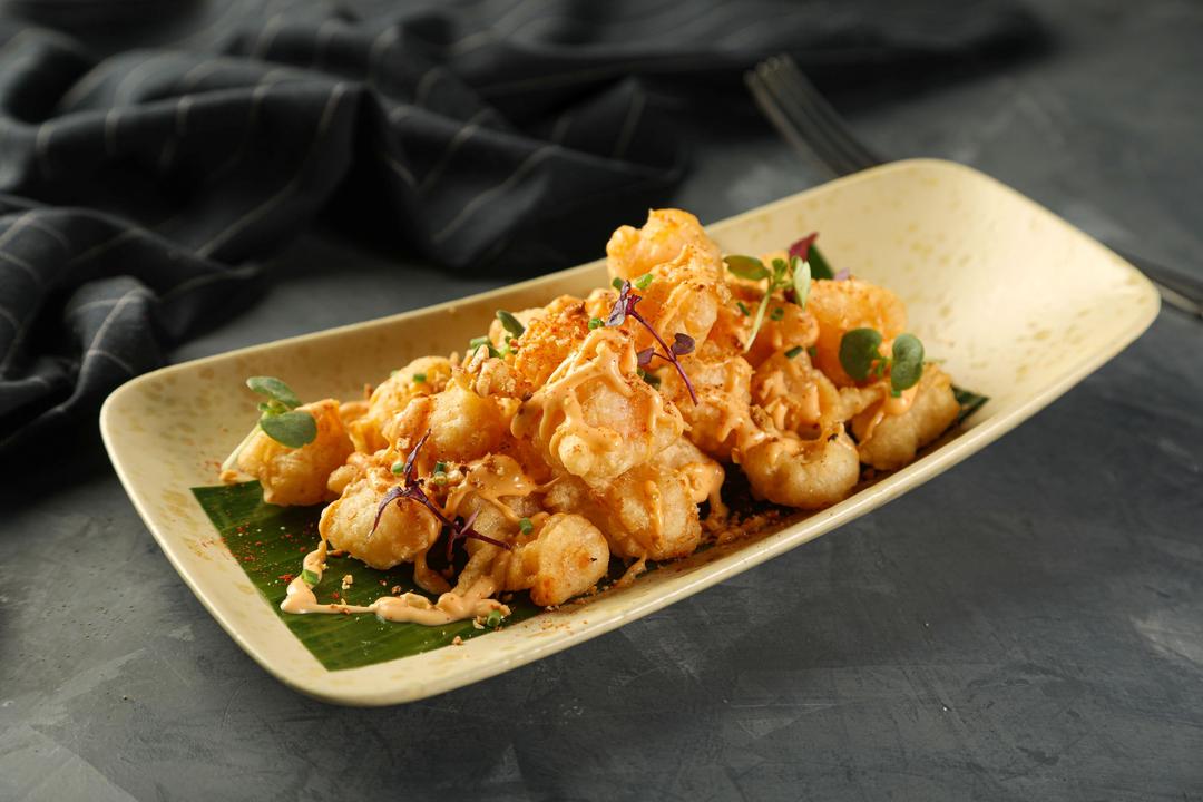 روبيان تمبورا مع صوص فيو الخاص