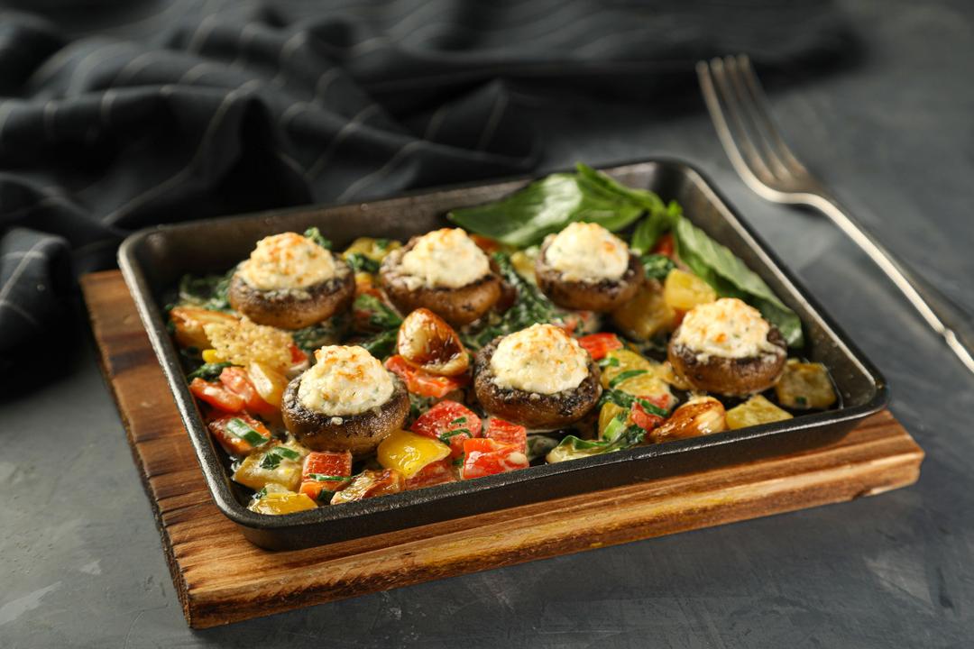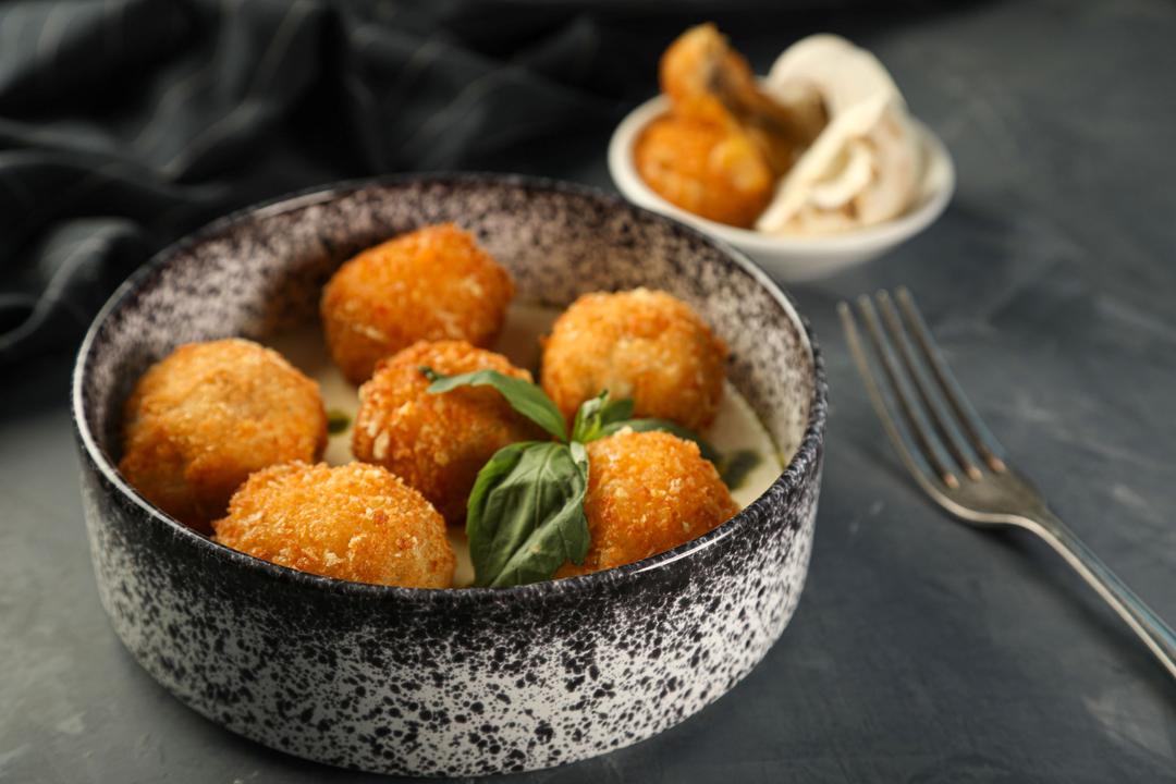 فطر طازج مقلي مع جبنة البرميزان