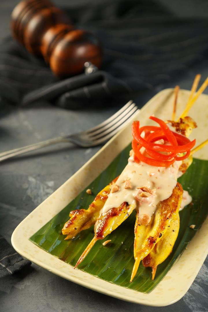 Served with peanut butter sauce