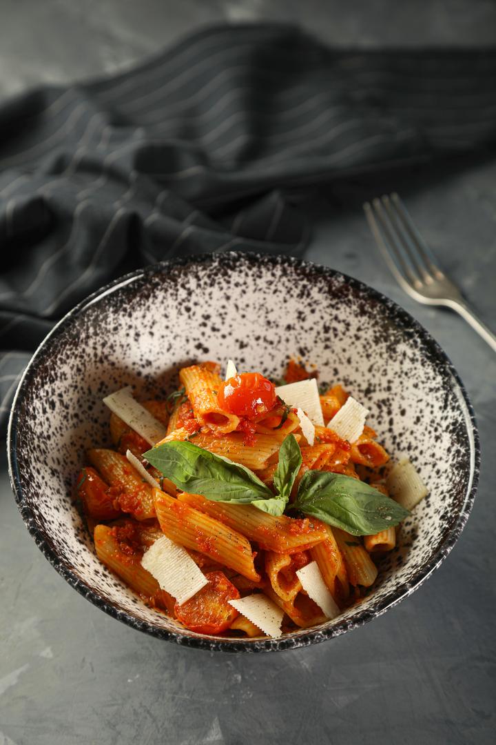 Penna Arrabiata Pasta with Tomato Sauce and Parmesan Cheese
