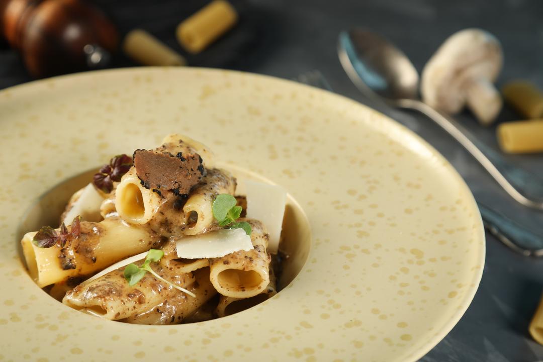 باستا الكمأ الأسود مع جبنة البرميزان