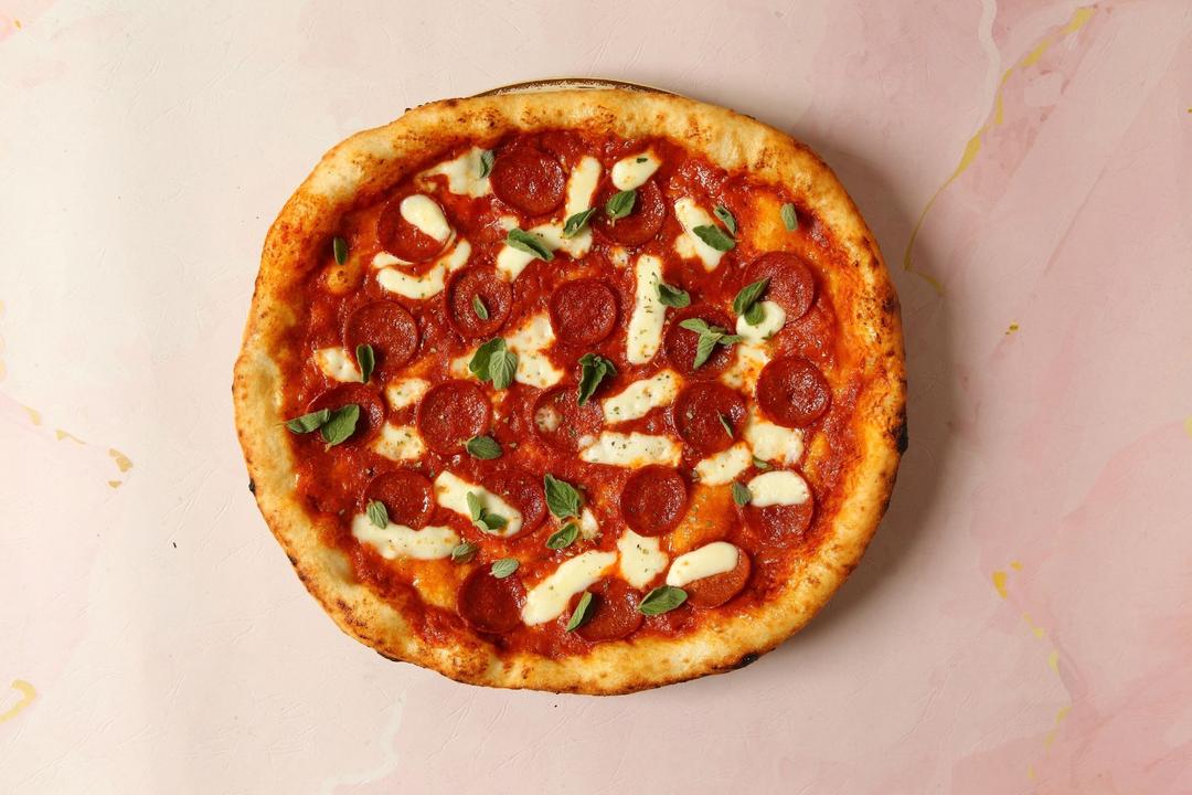 Our Signature, tomato sauce with fresh mozzarella cheese and pepperoni salami