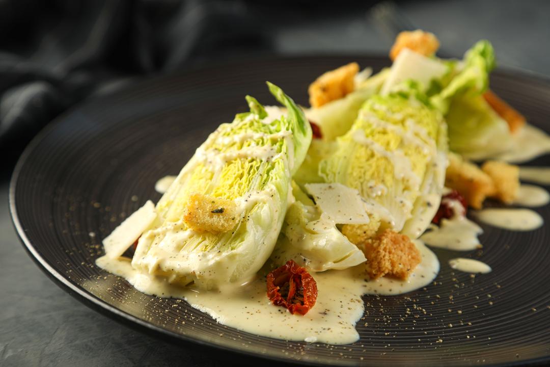 CRUNCHY ICEBERG LETTUCE WITH PARMESAN CHEESE AND CRISPY FOCCASIA CROUTONS
