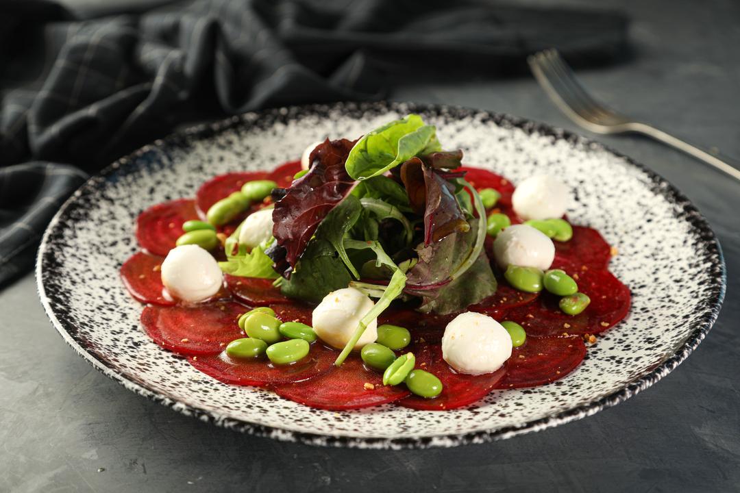 Beetroot Salad with Fresh Baby Mozzarella and Edamame