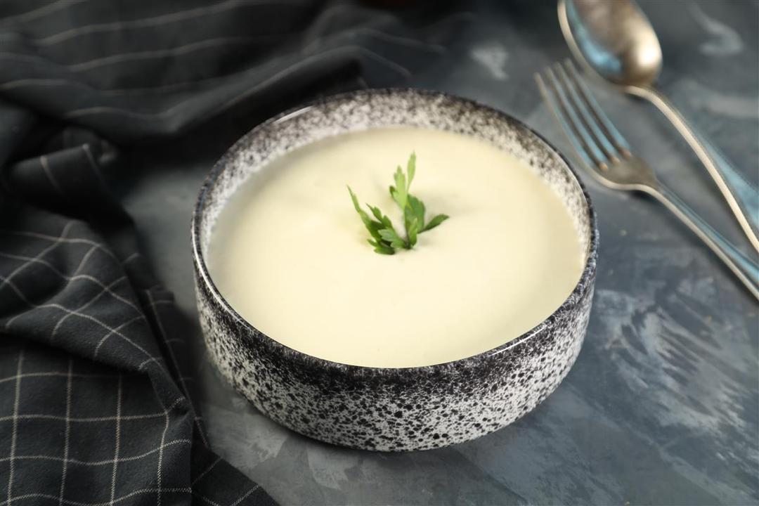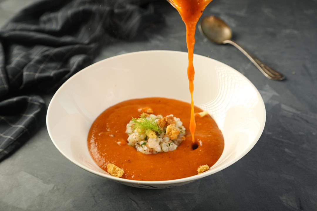 شوربة الروبيان الطازجة مع خبز الكروتون المحمص