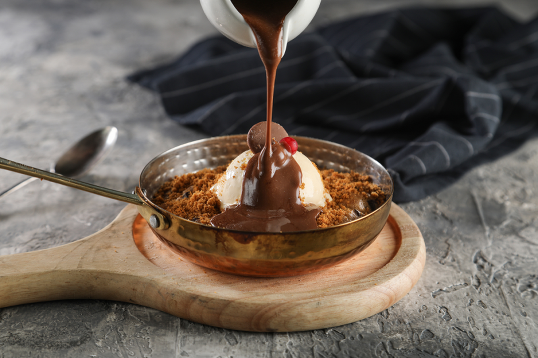 فوندو بالشكولاته البلجيكية الفاخرة و يقدم مع ايسكريم الفانيلا