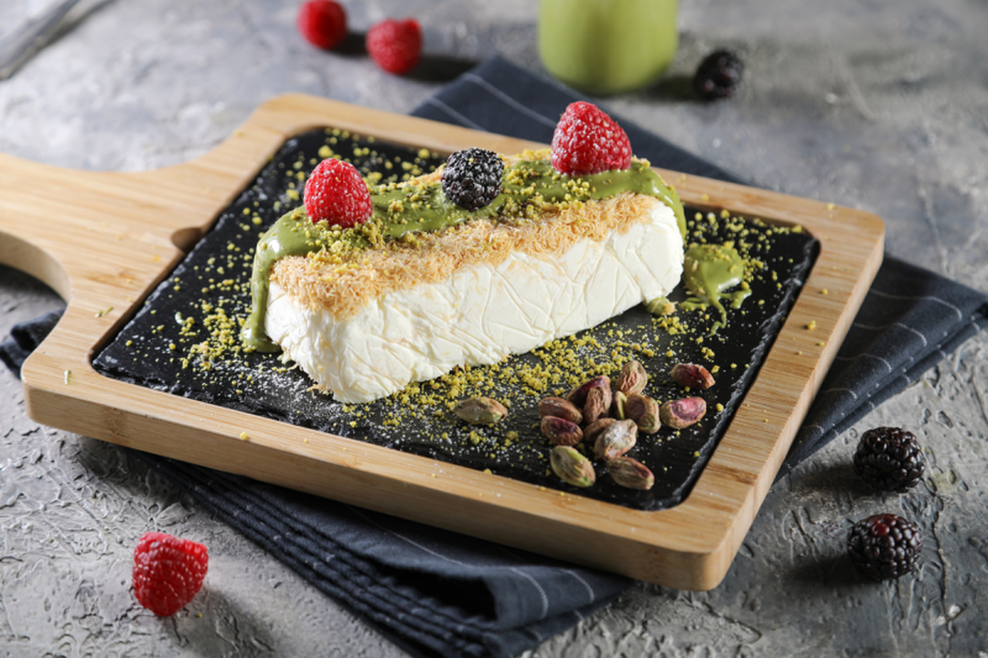 تشيز كيك مع عجينة الكنافة