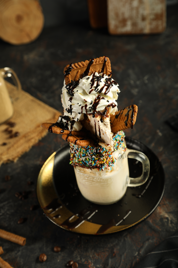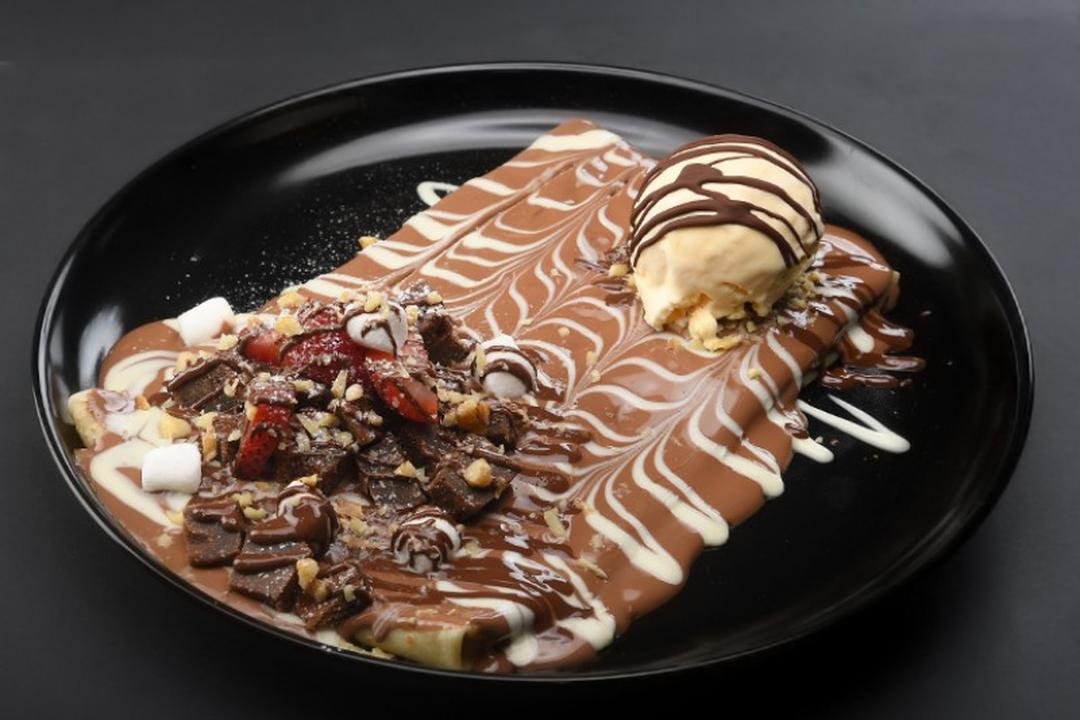 كب كوكيز المقرمش مع كريمة الجبنة و ايس كريم الفانيلا, مع القهوة و 3 انواع من الشوكولاتة الفاخرة
