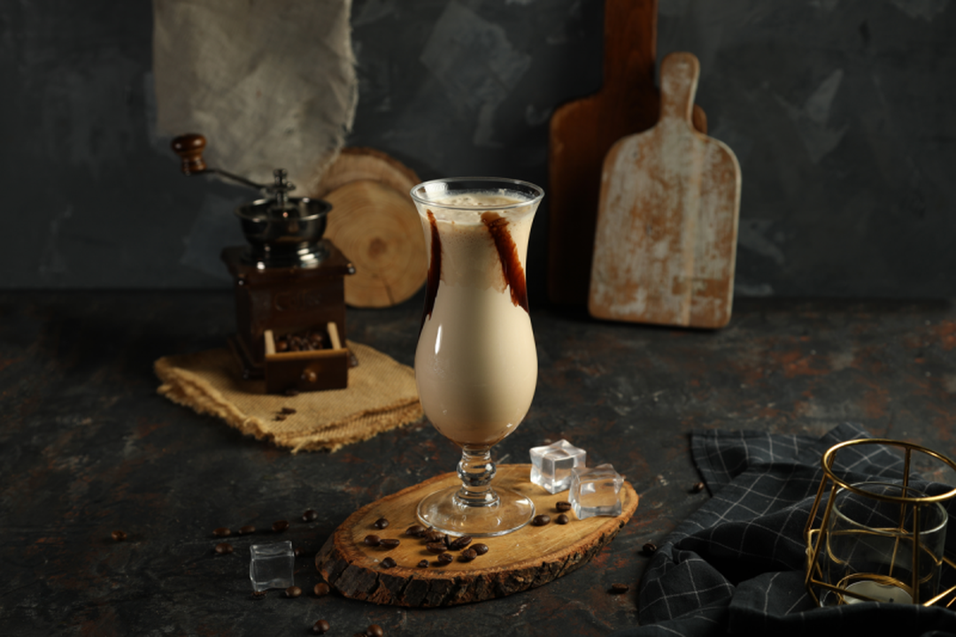 Crispy crust cup with homemade cheese cream, Vanilla ice cream, Coffe and 3 Chocolate